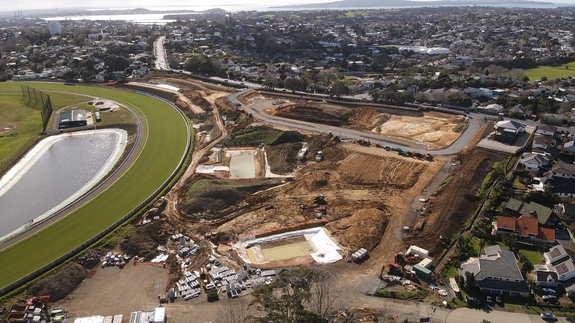 The Hill, a 358-unit development adjacent to the Ellerslie Racecourse, is a Fletcher Living project. The scope of work includes large-scale earthworks, the construction of retaining walls, and the implementation of advanced stormwater infrastructure to address downstream flooding concerns.